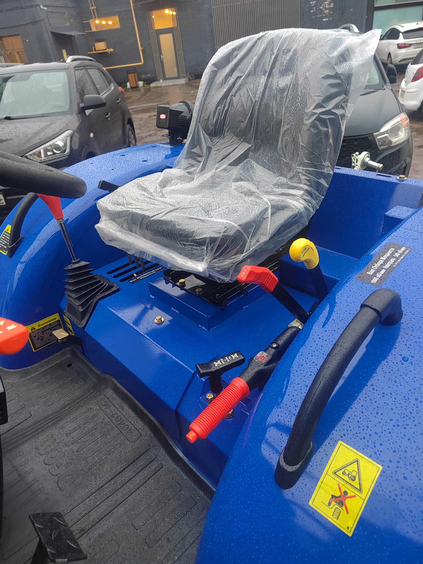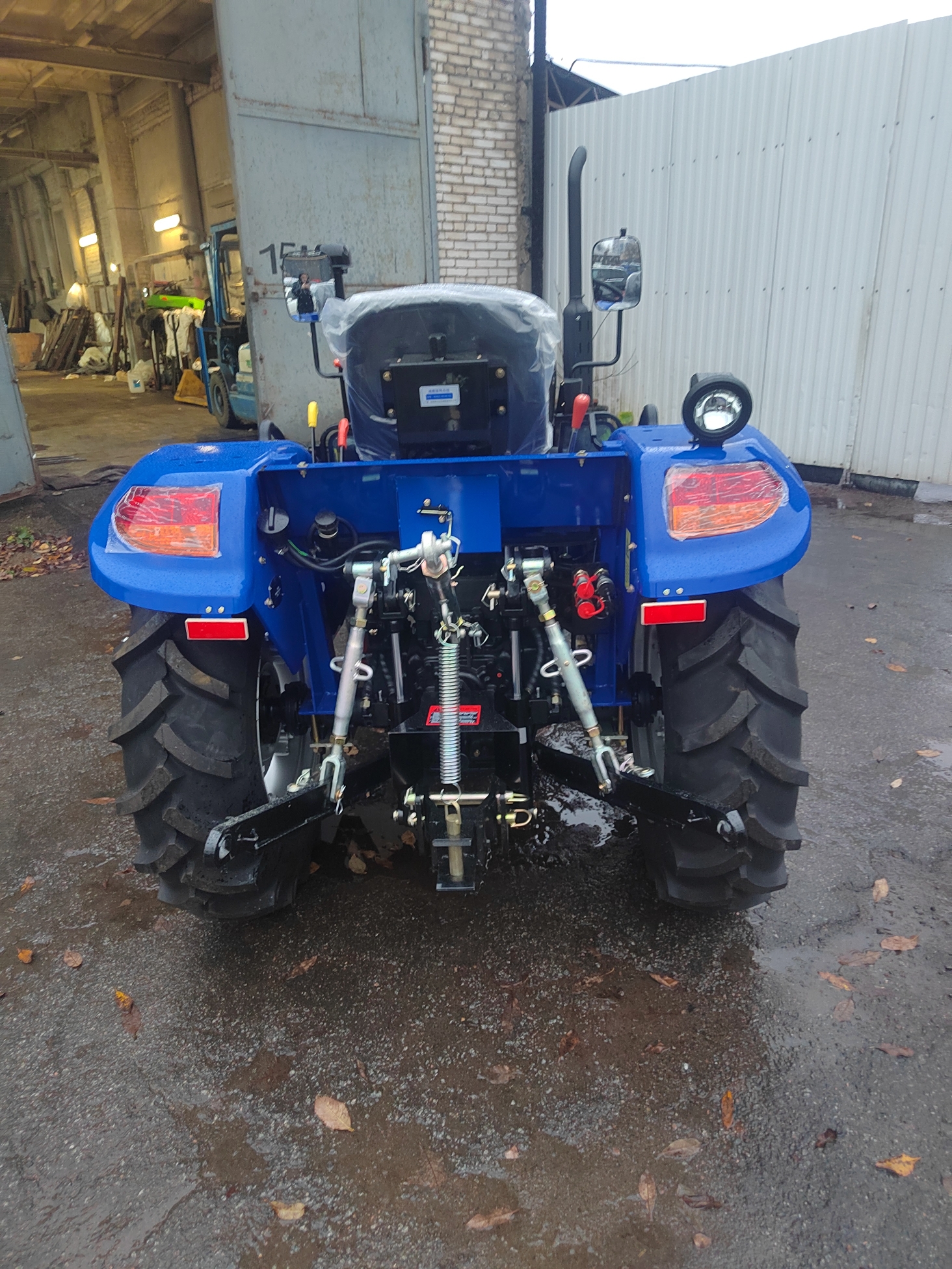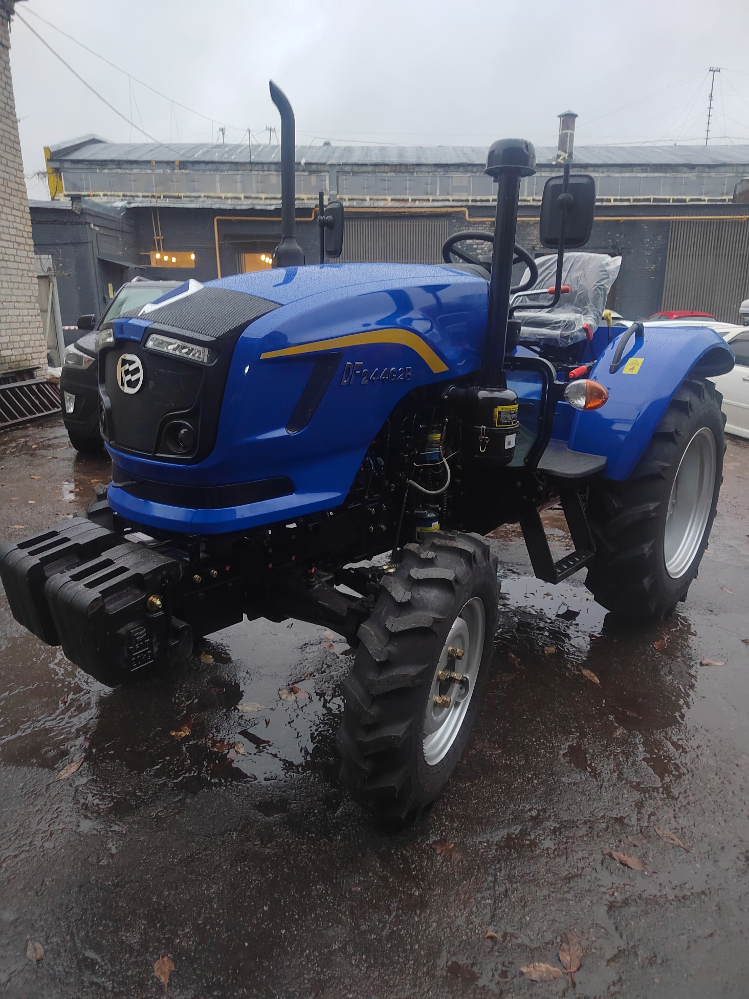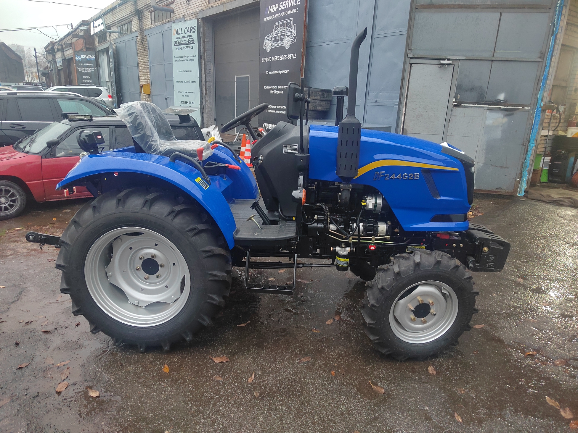 Dongfeng DF-244 G2B без кабины (синий) Привод: Полный (4x4) ГУР: Есть Двигатель: 3 цилиндра Блокировка дифференциала: Есть Производитель: КНР Привод от двигателя: Механическая передача Универсальный, компактный и многоцелевой китайский трактор (минитрактор) Dongfeng (Донг Фенг) DF-244 G2B без кабины c реверсом синего цвета может применяться в разных сферах: в сельском хозяйстве, в личном подсобном хозяйстве и при коммунальной уборке территорий и дорог. В базовой комплектации трактор Dongfeng DF-244 G2B без кабины и с реверсом синего цвета оснащается экономичным, четырехтактным, 3-х цилиндровым дизельным 24-ти сильным двигателем (ZN390Т) жидкостного охлаждения, полноприводной (4х4) механической трансмиссией (с пониженным рядом и блокировкой заднего дифференциала), счетчиком моточасов. За функционирование гидравлической системы трактора Донг Фенг ДФ-244 G2B с кабиной c реверсом отвечает гидронасос, критическим давлением 14 МПа. Дополнительно в базовую комплектацию входит: двухскоростной задний вал отбора мощности (ВОМ) 540 / 1 000 об/мин., задняя 3-х точечная навеска, задний гидравлический распределитель с рычагом управления с 4-мя коннекторами (гидровыходами). Дополнительно можно до установить: фронтальные противовесы. Удобство и комфорт управления трактором Dongfeng DF-244B G2 без кабины и с реверсом обеспечивает: практически ровный пол в зоне ног оператора; боковое расположение (справа от оператора) рычага коробки передач; реверсивное движение трактора (при помощи подрулевого рычага переключения направления движения); комфортное подпружиненное регулируемое под рост и вес оператора сиденье; гидравлический усилитель рулевого управления; классическое расположение рычагов управления ВОМ и задней 3-х точечной навески; короткоходная кулиса КПП; раздельные тормозные педали; ножной и ручной акселератор, вентилятор обдува оператора. За безопасность оператора полноприводного минитрактора Dongfeng DF-244 G2B без кабины и реверсом отвечает: рамная конструкция минитрактора, зеркала заднего вида, усиленные тормоза. В вечернее и ночное время безопасность оператора обеспечат линзованные галогеновые фары с мощным потоком света, фонари габаритных огней, задние стоп сигналы, фонарь заднего хода, фонари указателей поворотов и площадка под номерной знак с подсветкой. Надежный, экономичный, многоцелевой китайский минитрактор Донг Фенг DF-244 G2B без кабины и с реверсом станет надежным помошником в фермерском или личном подсобном хозяйстве. Он легко вспашет плугом земельный участок до 20 Га, обработает почву фрезой - 1,4 м, посадит и соберет урожай, поможет с заготовкой сена, перевезет груз в прицепе до 1,5 т., очистит территорию и дороги от снега и выполнит еще много других видов работ как в фермерском хозяйстве, личном подсобном хозяйстве так и в коммунальном хозяйстве. ОСОБЕННОСТИ МИНИТРАКТОРА DONGFENG DF-244G2B с реверсом (модель 2025 г.): В модели DF-244G2B (2025 г.в.) Изменился дизайн. Производитель заменил решетку радиатора. Появился отличный светодиодный дальний свет. Линзованная оптика ближнего света. Передние противовесы общим весом - 120 кг. (в старой версии были 80 кг.). Двигатель ZN-390T ранее устанавливался только на мини-тракторы Dongfeng DF - 304G2 (30 л.с.). На модели DF-244G2B - дефорсирован до 24 л.с. Данный двигатель на этой модели более энергоемкий и ожидается, что он будет более ресурсный. В новой модели производитель разде
